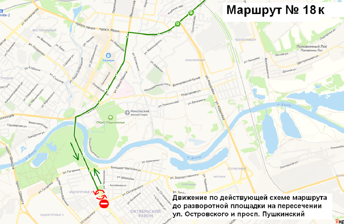 В связи с проведением ремонтных работ на пересечении ул. Островского и пр-та Пушкинский автобусы будут ходить по следующим схемам, в объезд ремонтируемого участка.